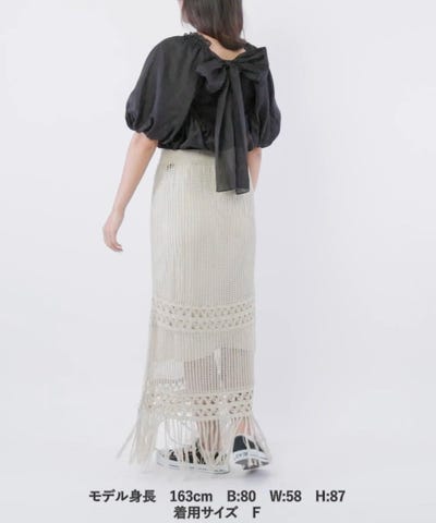 ●麻混のシャリ感のある糸で、複数の編み地を組み合わせたこだわりのスカート