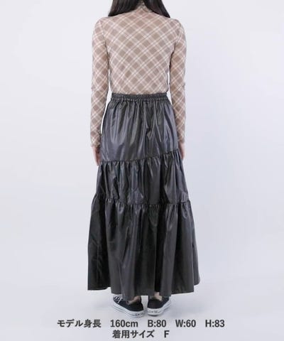 ●アシンメトリーのティアードデザインが特徴的な、洗練された印象を与えるフェイクレザースカート