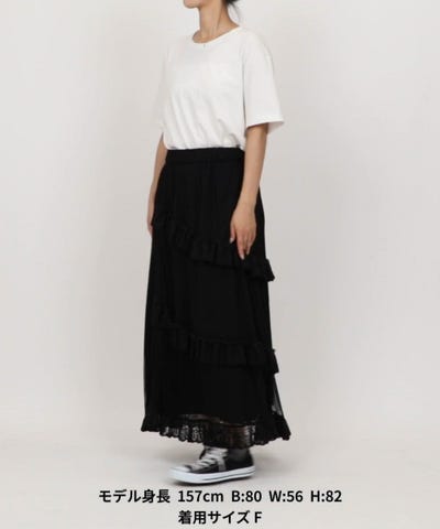 ●アシンメトリーにレースをあしらったチュールスカート