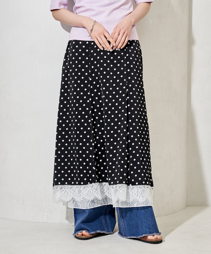 ●レース面を裏にすると、裾からさりげなくレースが覗くデザイン