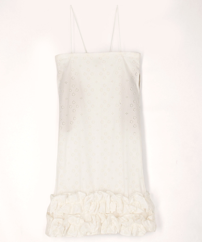 ●コットンタイプライター生地に花柄を繊細に刺繍したエンブロイダリーレースのストラップドレス
