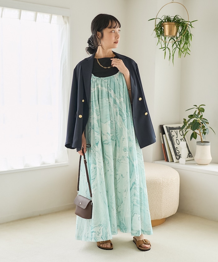 ●夏らしさ満点のマーブルプリントが目を惹く、インド製キャミソールワンピース