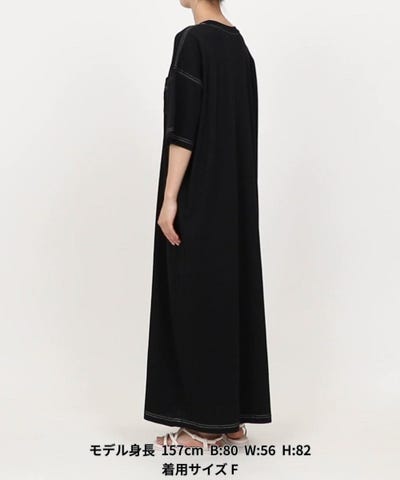 ●配色ステッチがアクセントになったポケットTシャツワンピース