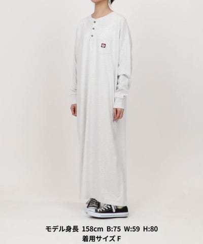 ●ヘンリーネックで胸元の開き具合が調節出来るTシャツワンピース