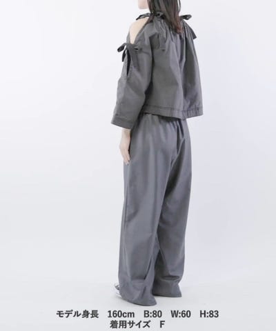 サロペットのインナーやワイドデニムなどと合わせるとリボンの甘さが程よく緩和されカジュアルミックスなスタイリングに。
