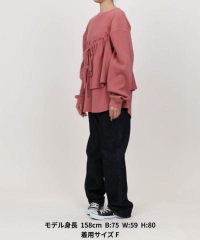 ●カジュアルな素材感ながら、リボンがアクセントになったビスチェをオンすることで可愛らしい雰囲気に