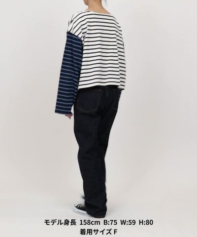 ●身頃と袖を配色デザインにし、キャッチーに仕上げたボーダートップス