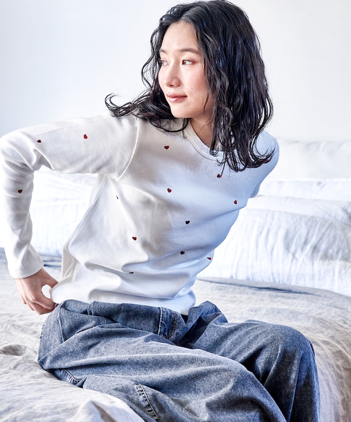 ●小さなハート刺繍を散りばめたキュートなカットソー