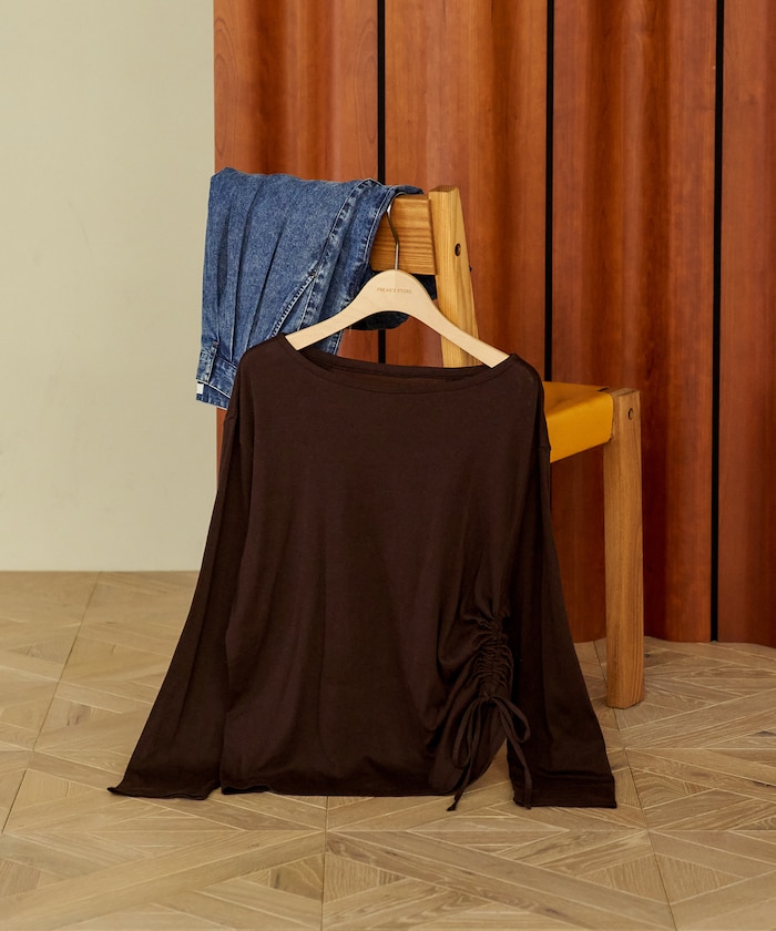 ●サイドにはシャーリングデザインを施し、シンプルな中に一癖をプラス