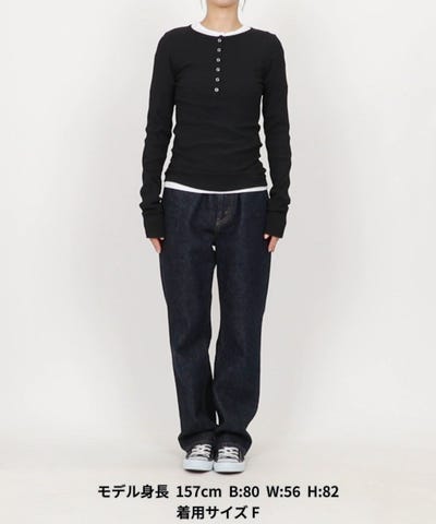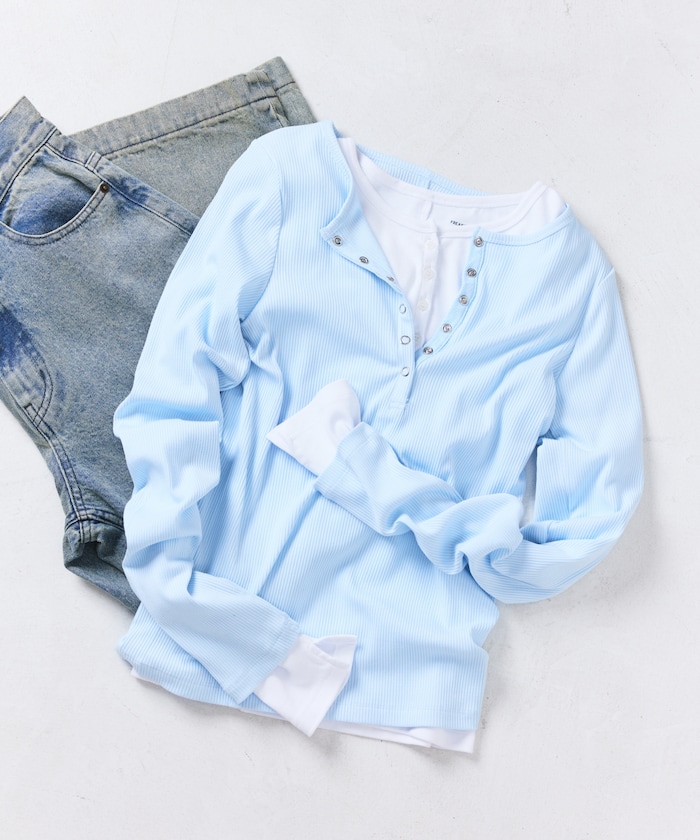 ●リブとスムース、質感の異なる2種類のカットソーがセットになったレイヤードトップス