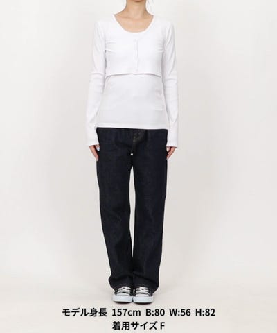 ●しなやかで落ち感のあるリブ生地が体にほどよくフィットし、女性らしいシルエットを演出
