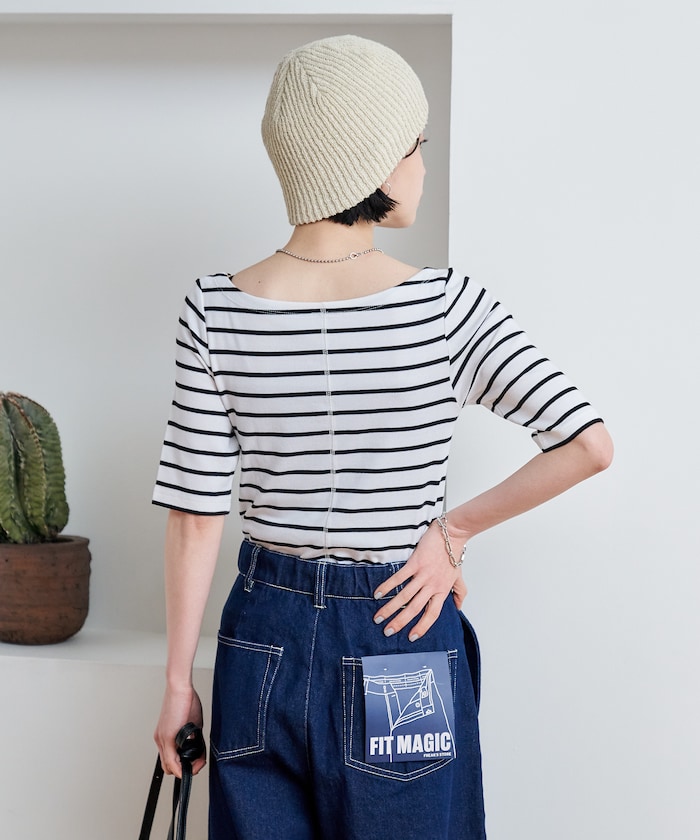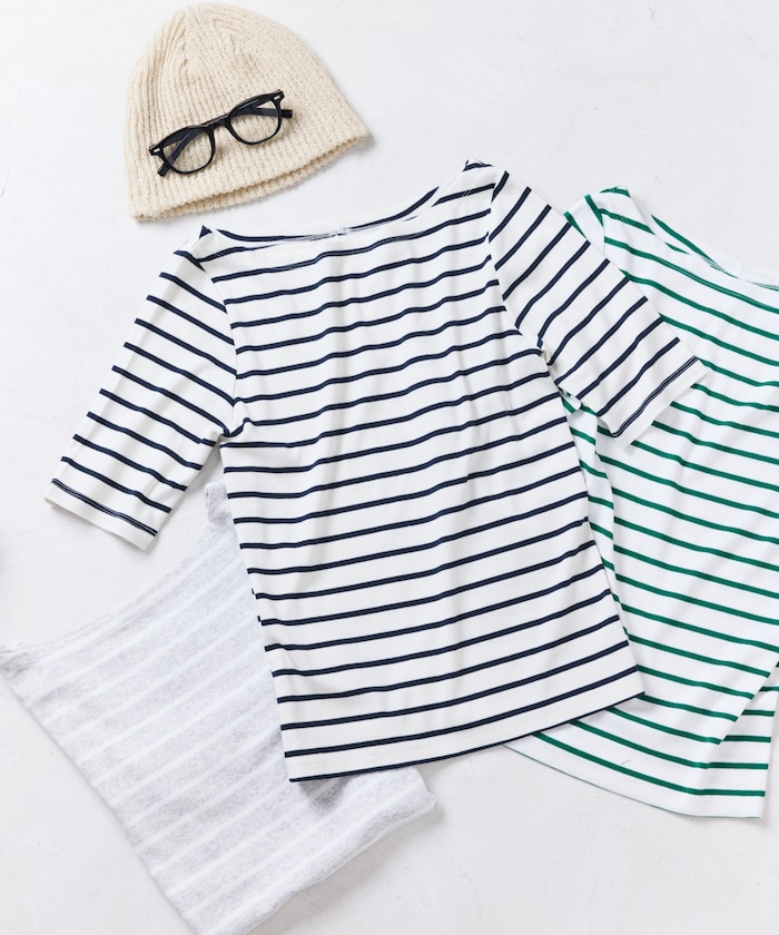 大人がきれいに着られる定番“ボーダー”5分袖Tシャツ