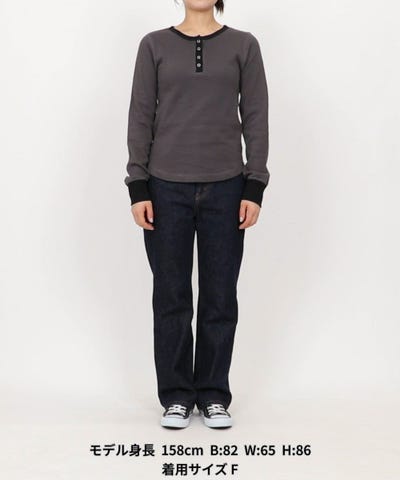 シンプルなヘンリーネックなのでインナー使いや2枚重ねてレイヤードして楽しめます。