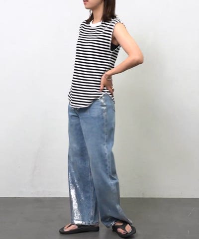 華奢見えするフレンチスリーブトップスは、シンプルなデザインなので合わせるボトムスを選びません。