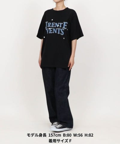 ●リメイク風のデニムロゴとフラワー刺繍の凝ったデザインが目を惹くTシャツ