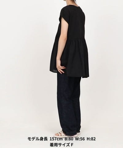 ●やわらかく膨らみのある天竺のTシャツに、異素材で切り替えたフレアデザインが特徴の半袖カットソー