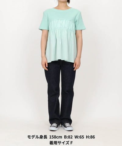 一枚できまる、カジュアルだけど女性らしいドッキングTシャツ