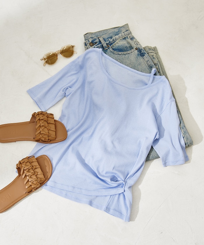 ●大人のワードローブに今足したい、程よくカジュアルでやりすぎない上品さが手に入るアシンメトリーネックデザインのトップ