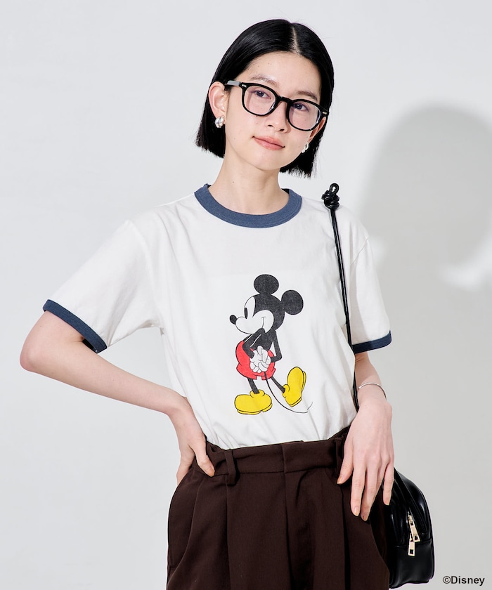 「ミッキーマウス」「ミニーマウス」をプリントしたキャッチーなリンガーTシャツ