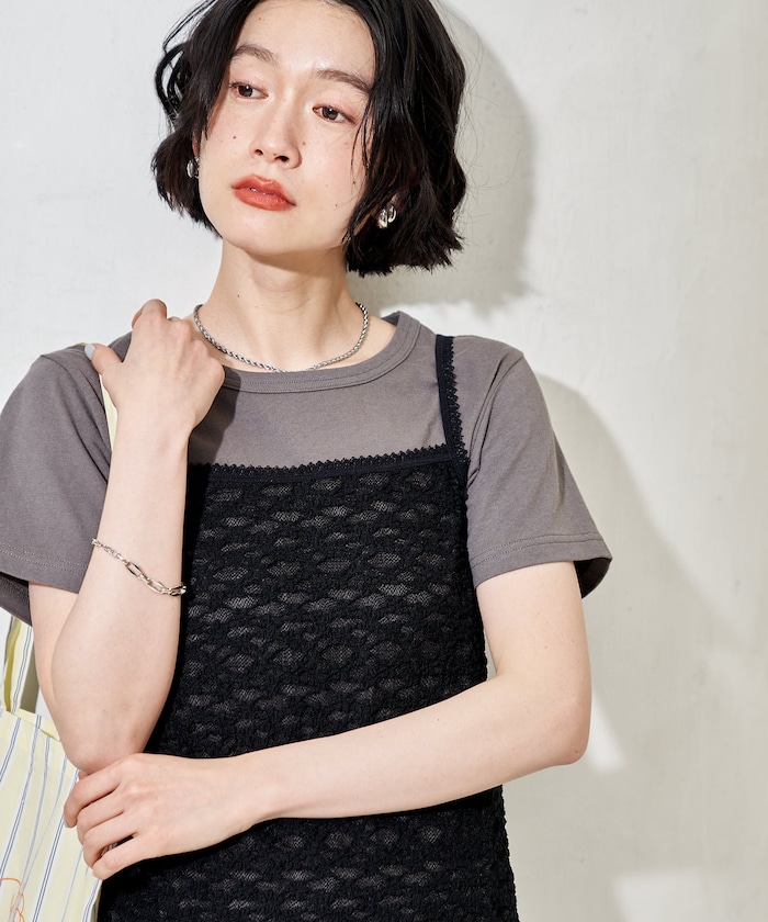●レースキャミソールとTシャツがセットになったレイヤードトップス