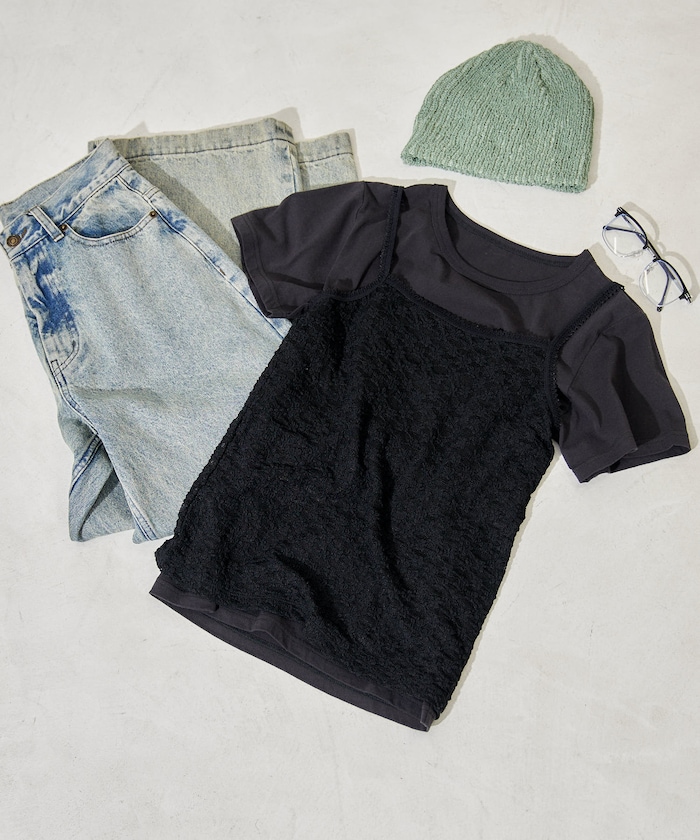 重ねるだけで今っぽい、レースレイヤードトップス