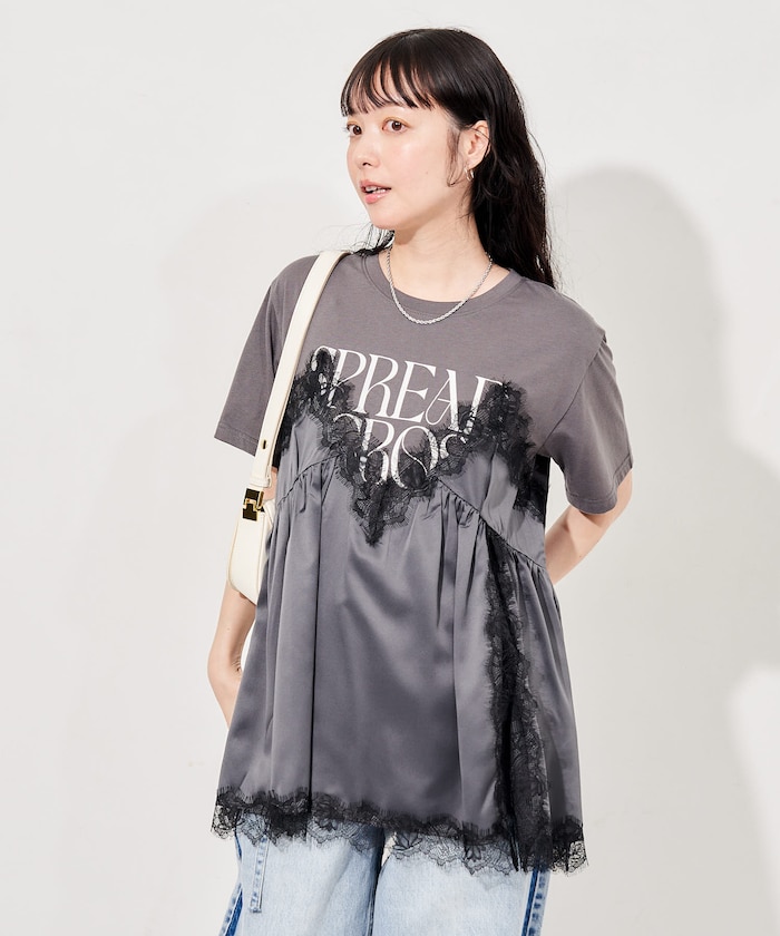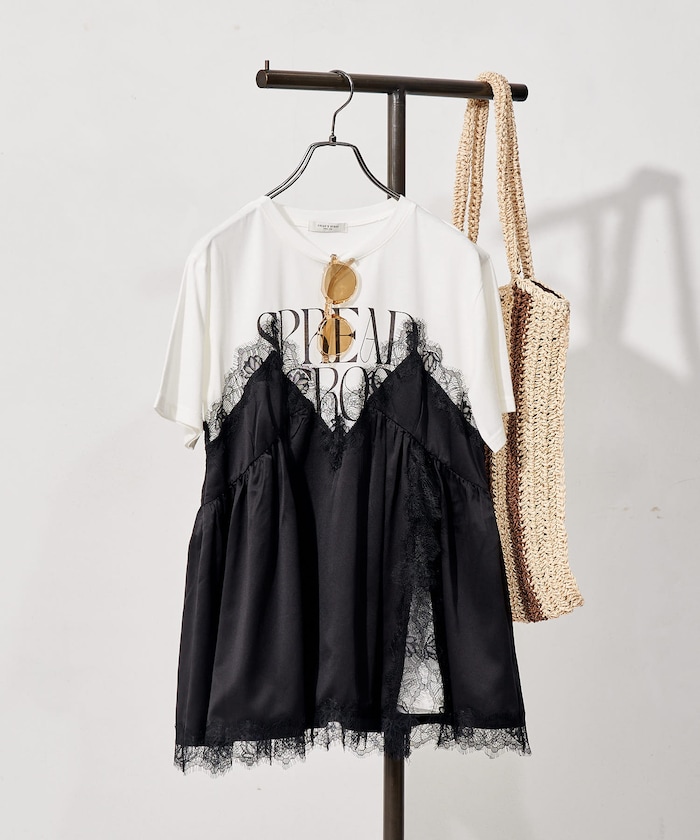 ●繊細なレースの甘さとTシャツのラフさが絶妙にミックスされ、1枚でコーデの主役になるアイテム