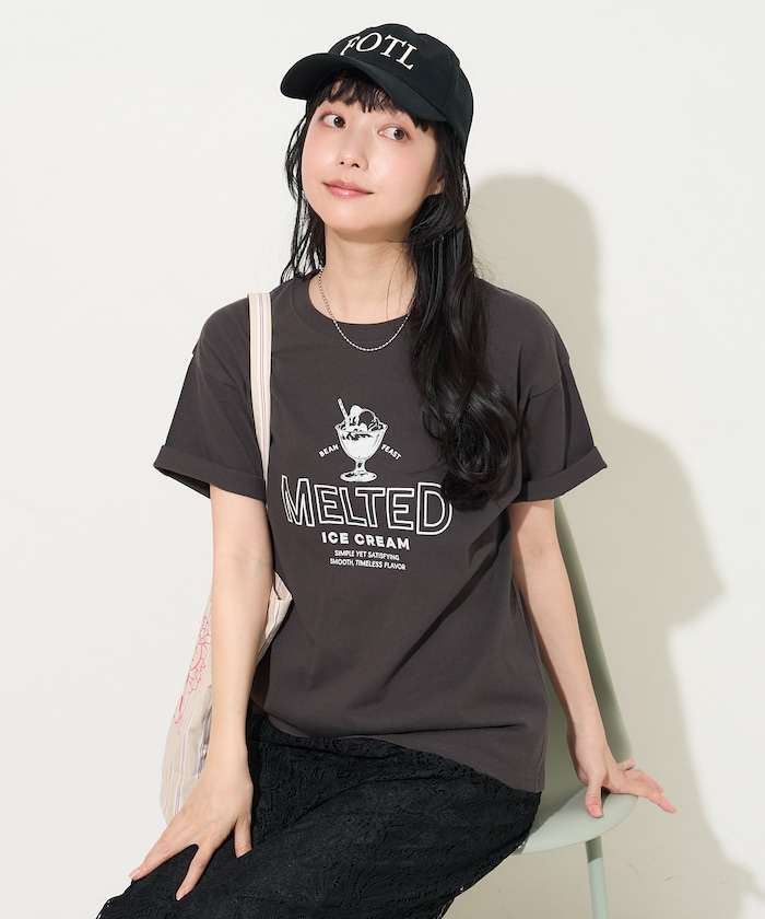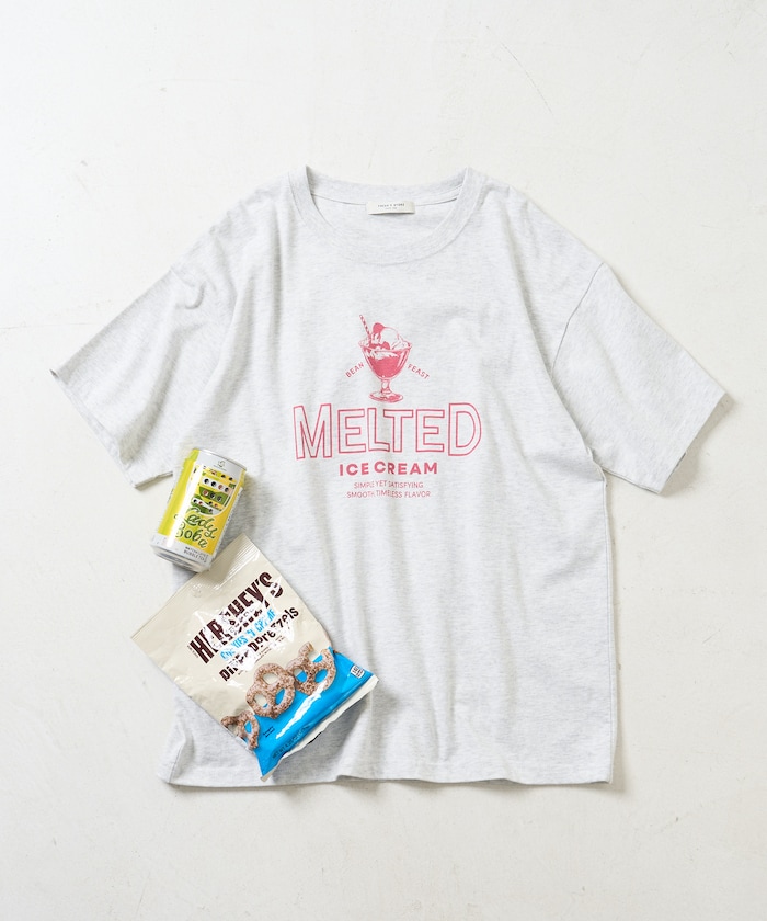 アイスクリームモチーフのプリントが目を引く、キャッチーな半袖Tシャツ