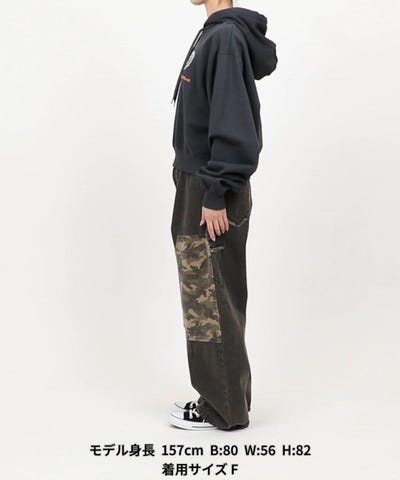 着丈が短めにデザインしているので、ワイドデニムやダメージデニム、スウェットパンツなどボリュームのあるパンツと合わせるのがおすすめ。