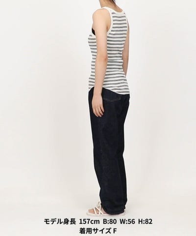 ●カジュアルな印象のボーダー柄、表情のあるランダムリブが特徴のタンクトップ