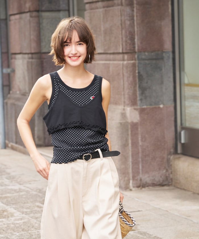 大人のレイヤードスタイルを格上げする、天竺ビスチェ