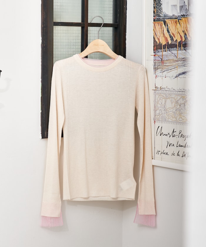 ●シアートップスをレイヤードしているかのようなデザインが魅力のリブニット