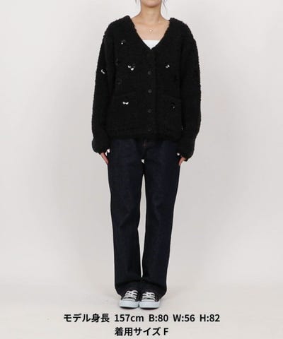 ●ブークレニットにスパンコールのフラワービジューをあしらったニットカーディガン