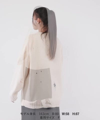 デニムパンツやスウェットパンツを合わせてボーイズライクにも、スカートを合わせてガールズな雰囲気コーディネート出来るダメージニット。