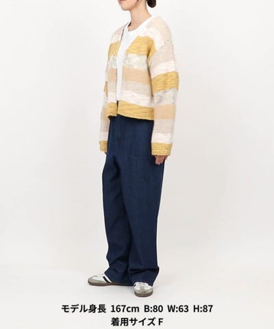 ●複数の毛糸でボーダー状に編み上げたミックスニットカーディガン