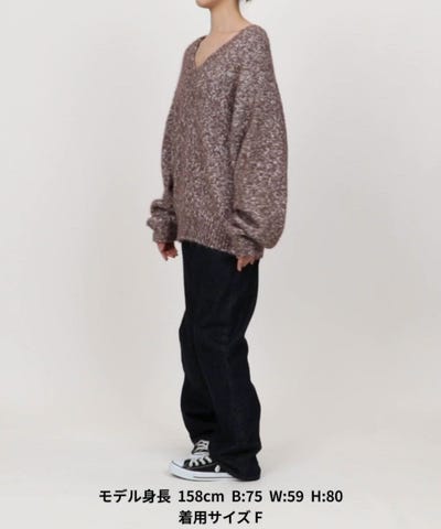 ●ざっくりとしたVネックのオーバーサイズシルエットで、大人っぽいこなれ感を演出