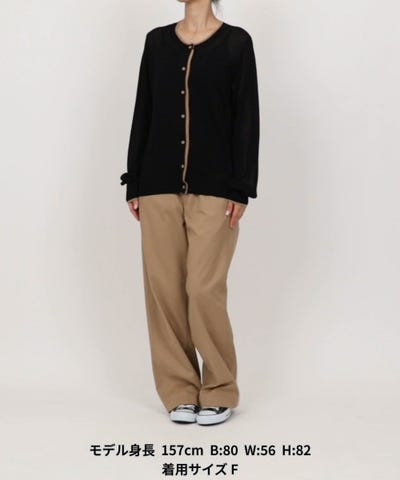 ●シンプルながら配色デザインを効かせたシアーカーディガン