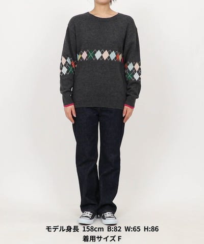 配色アーガイルが映える、上品でレトロなクルーネックニット