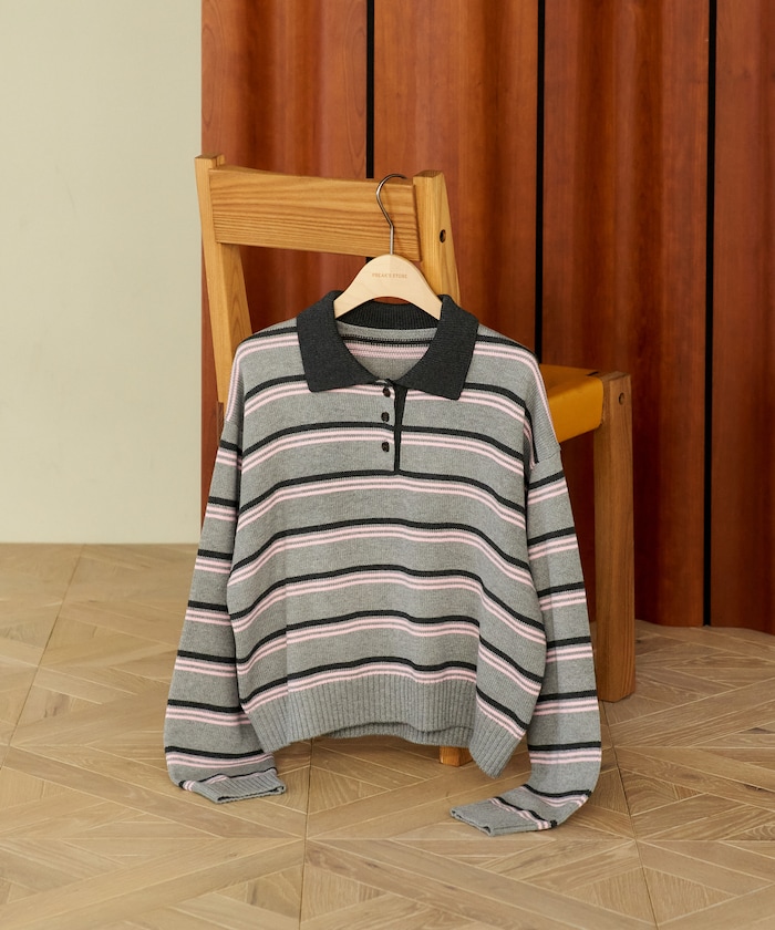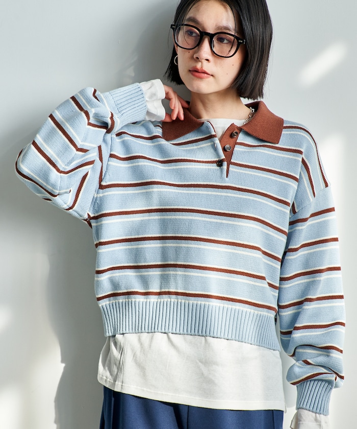 印象的な配色バランスが目を惹くマルチボーダーポロニット