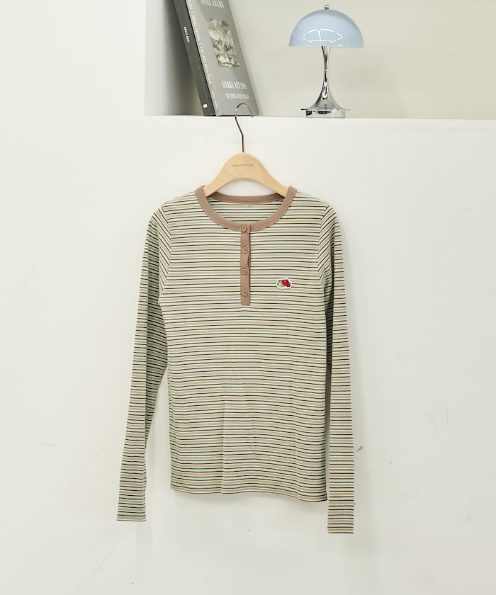 ●デイリーに取り入れやすい、配色の効いたマルチボーダーが目を惹く長袖Tシャツ