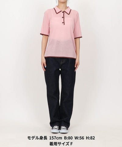 ●程よい透け感が軽やかな印象を与える、シアー素材の5分袖ポロニット