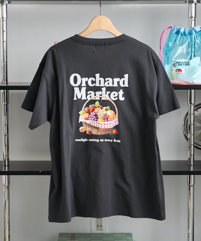 ●フルーツバスケットモチーフの遊び心のあるバックプリントが、スタイリングのアクセントになった一枚