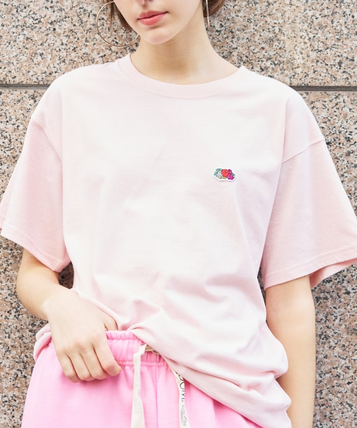●フロントにはフルーツモチーフのロゴ刺繍をさりげなく配置