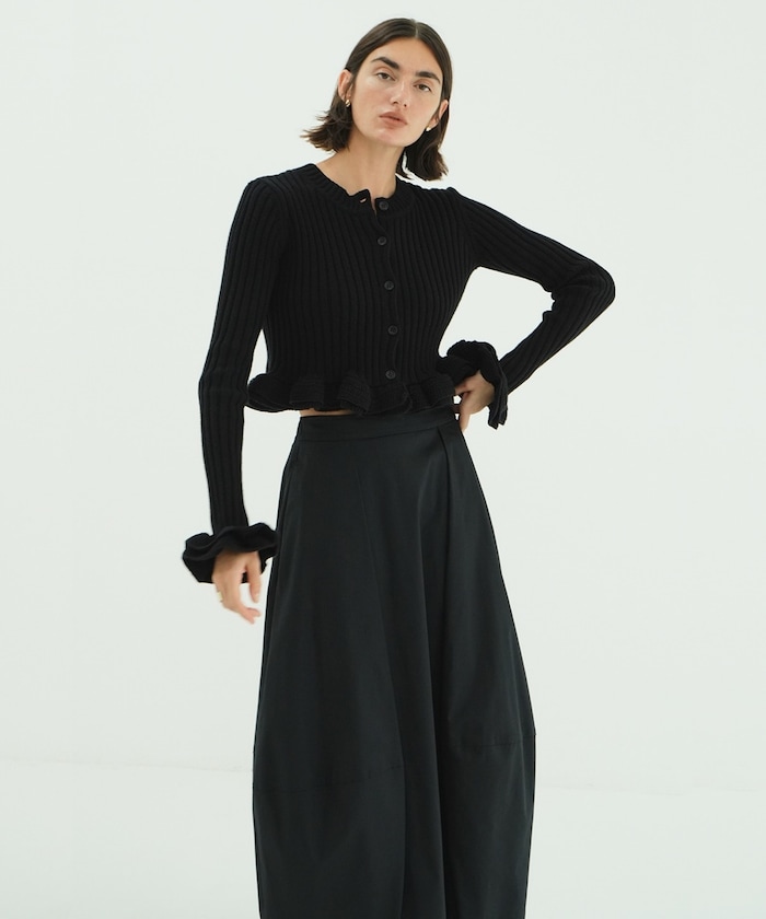●編み地はワイドリブで編み立て、フリルの甘さをカジュアルに引き締めました