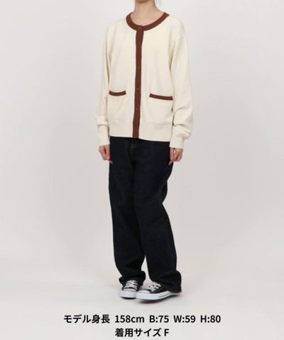 ●形自体はシンプルなクルーネックで、羽織りだけでなく前を閉めてもさまになるデザインです