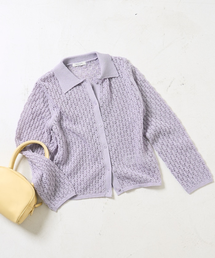 軽やかな透け感で、1枚でも羽織でもサマになるニットポロ