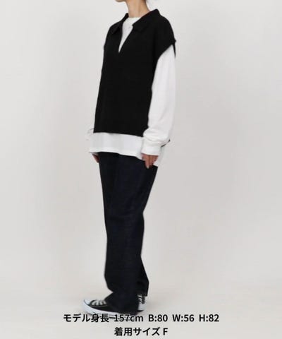 ●ポロ襟デザインのスキッパーニットベストと、ベーシックなカットソーのセットアイテム