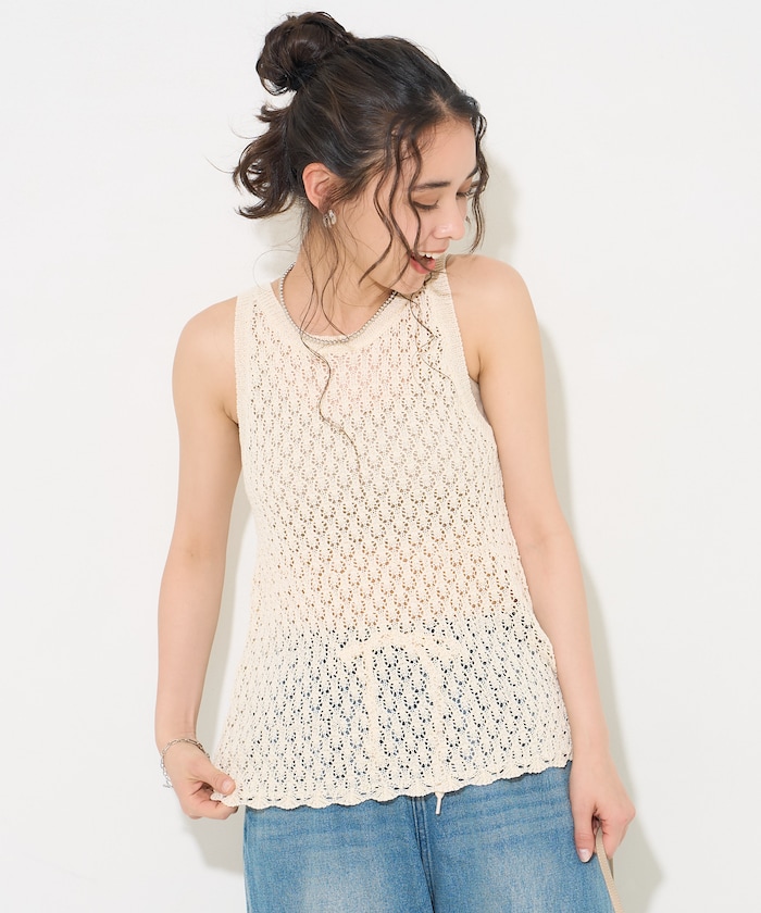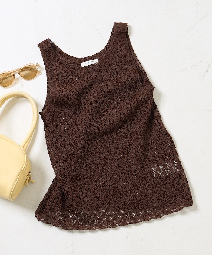 ●透かし編みデザインで、抜け感のある涼しげな印象なサマーニットタンク