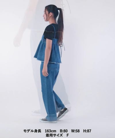 ●トップスにも腰に巻いても使えるビスチェがセットになったデニムパンツ
