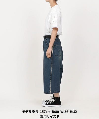 サイド、ポケットにスタッズをあしらった8部丈パンツ。