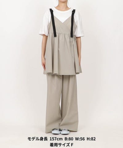 カシュクールキャミ型トップスとワイドパンツの高機能セットアップ